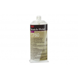 Структурното двукомпонентно твърдо епоксидно лепило 3M Scotch-Weld DP760 се втвърдява при стайна температура. Има най-висока температурна устойчивост. Времето за обработка е около 60 минути, достигане на манипулационна здравина 4-6 часа. Лепилото създава много здрави, твърди и устойчиви връзки. Има по-ниска ударна якост и висока статична якост. Идеален е за лепене на метали, стъкло, избрани високотемпературно устойчиви пластмаси и влакнести композити. Технически параметри система:двукомпонентно лепило, 2:1, EPX основа:твърд епоксид температурна устойчивост:230 °C устойчивост на UV:отлична устойчивост на влага:отлична устойчивост на химикали:отлична приложение:апликатор от дуокартуша EPX