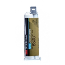 Лепилото с синьо-зелен цвят 3M Scotch-Weld DP8805 NS с намалена миризма има отлична ударна устойчивост и здравина на срязване и отлепване върху пластмаси, метали и стъкло. Преди залепване изисква само минимално почистване или обезмасляване. Има значително ускорено втвърдяване и повишена температурна устойчивост. Удължен срок на съхранение – 18 месеца. Време за обработка: 5 минути. Постигане на структурна здравина: само 10 минути. Лепилото е предназначено за повърхности с висока повърхностна енергия (HSE): нелакирани метали, стъкло, дърво, камък, керамика и др.; и със средна повърхностна енергия (MSE): метали, боядисани с невтвърдяващи се бои, пластмаси с изключение на LSE и др. Технически параметри система:двукомпонентно лепило, 10:1, EPX база:акрилат с намалена миризма температурна устойчивост:150 °C устойчивост на UV:много добра устойчивост на влага:много добра устойчивост на химикали:много добра приложение:апликатор от дуокартуша EPX