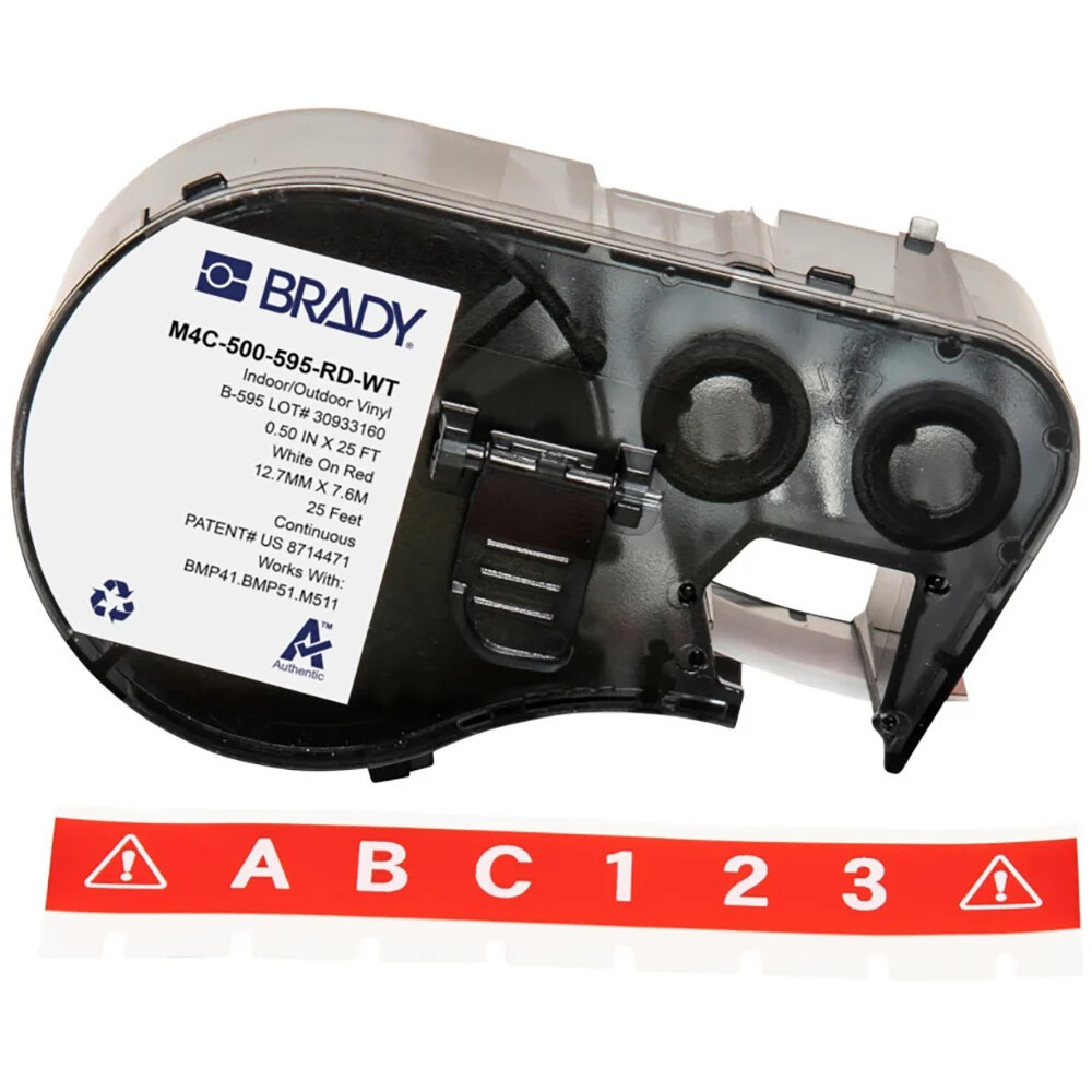 Brady M4C-750-595-RD-WT / 170829, 19.05 mm x 7.62 m, Винил, бял печат / червен фон