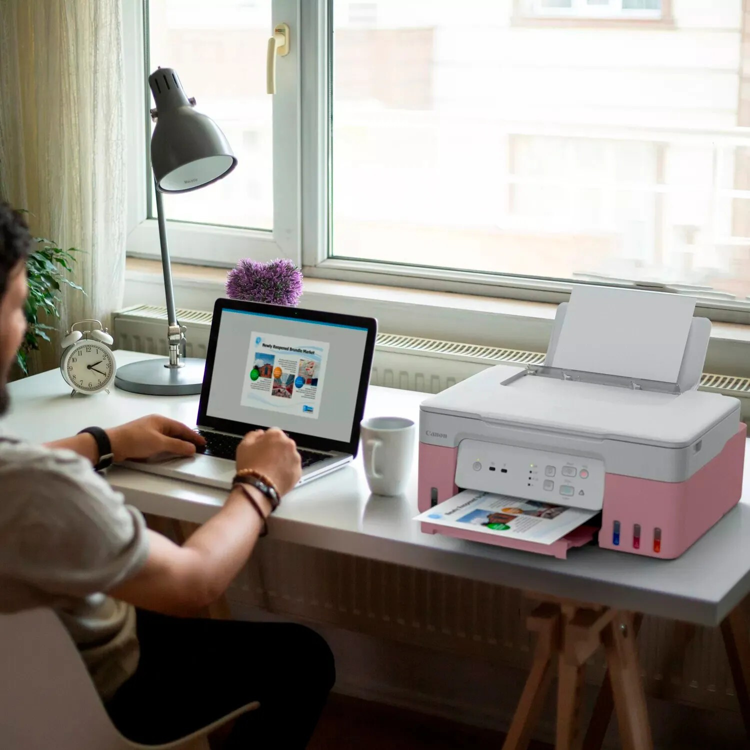 Печатайте, копирайте и сканирайте документи у дома и същевременно спестете значително с този бърз, достъпен и ефективен принтер MegaTank с Wi-Fi връзка. Благодарение на допълващите се резервоари и един комплект мастилени бутилки, позволяващи отпечатването на до 4 600 страници, оперативните разходи в сравнение с принтерите на базата на касети са изненадващо ниски.