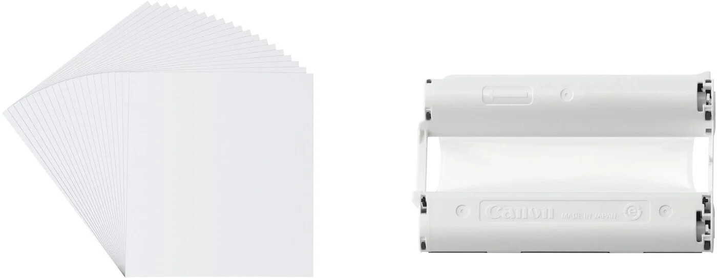 Насладете се на висококачествени снимки с размери 68 x 68 мм с комплекта Canon SELPHY SX-20L.Комплектът съдържа 20 листа фотографска хартия и 1 касета с мастилена лента. Снимките се отпечатват с помощта на сублимационна технология, която осигурява бързо изсъхване, така че можете да се похвалите с вашите страхотни снимки веднага след отпечатването. Етикетите и фолиите за оцветяване са съвместими с фото принтера Canon Square QX10.