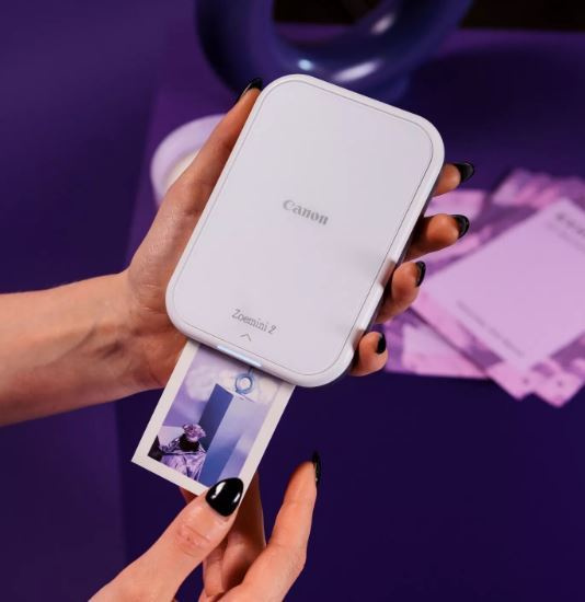 Моделът Canon Zoemini 2 е презареждащ се фотопринтер, който винаги е с вас, когато го нуждаете. Не използва мастило и е толкова малка, че се побира в джоба ви. Заснемете и персонализирайте снимки на мобилното си устройство и след това за миг получете самозалепващи се отпечатъци, които можете да споделите с приятелите и семейството си.