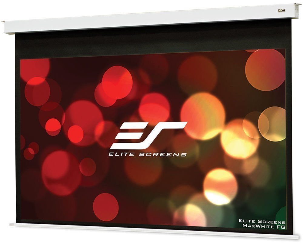 Elite Screens EB92HW2-E12 Електрически таванен екран с диагонал 92" и съотношение на страните 16:9. Впечатлява с високи ъгли на наблюдение до 180°. Платното има отстъпен горен ръб с ширина 12". Инсталация на тавана.