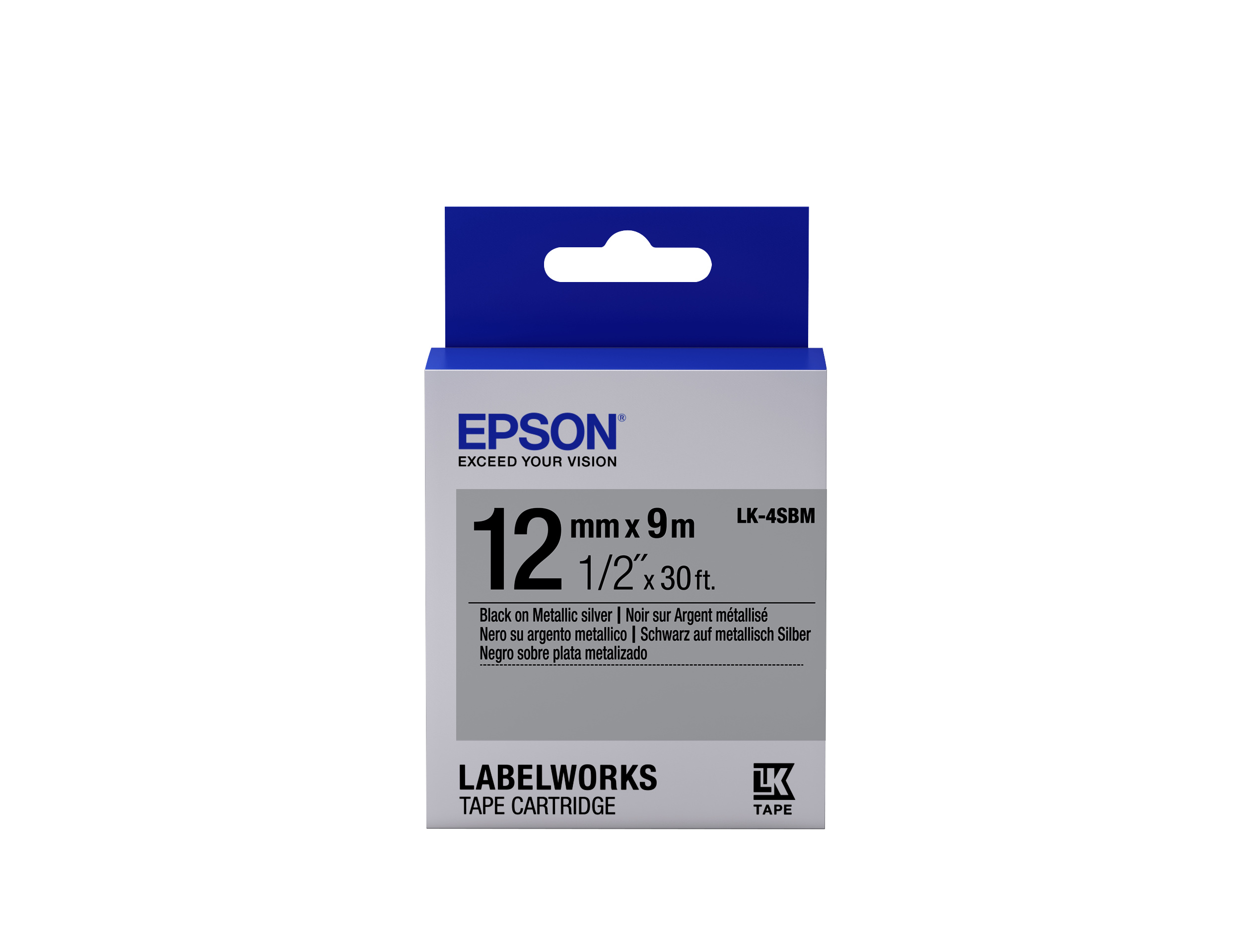 Epson LabelWorks LK-4SBM C53S654019 12мм x 9м, черно копиране / сребърен фон, флуоресцентен, оригинален лента