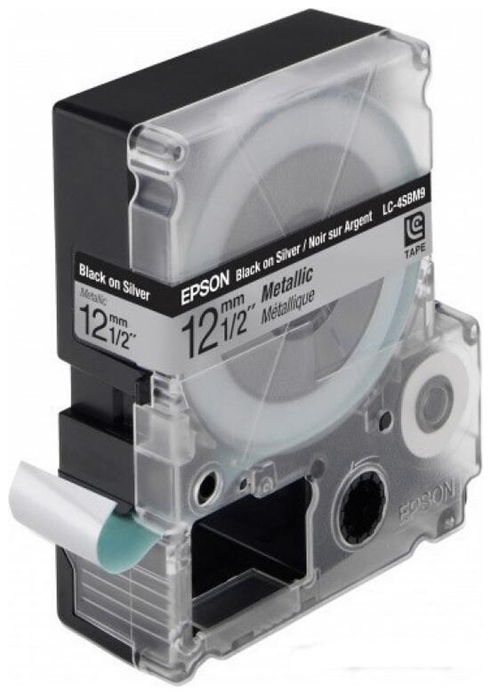 Epson LabelWorks LK-4SBM C53S654019 12мм x 9м, черно копиране / сребърен фон, флуоресцентен, оригинален лента може да се използва в следните принтери
