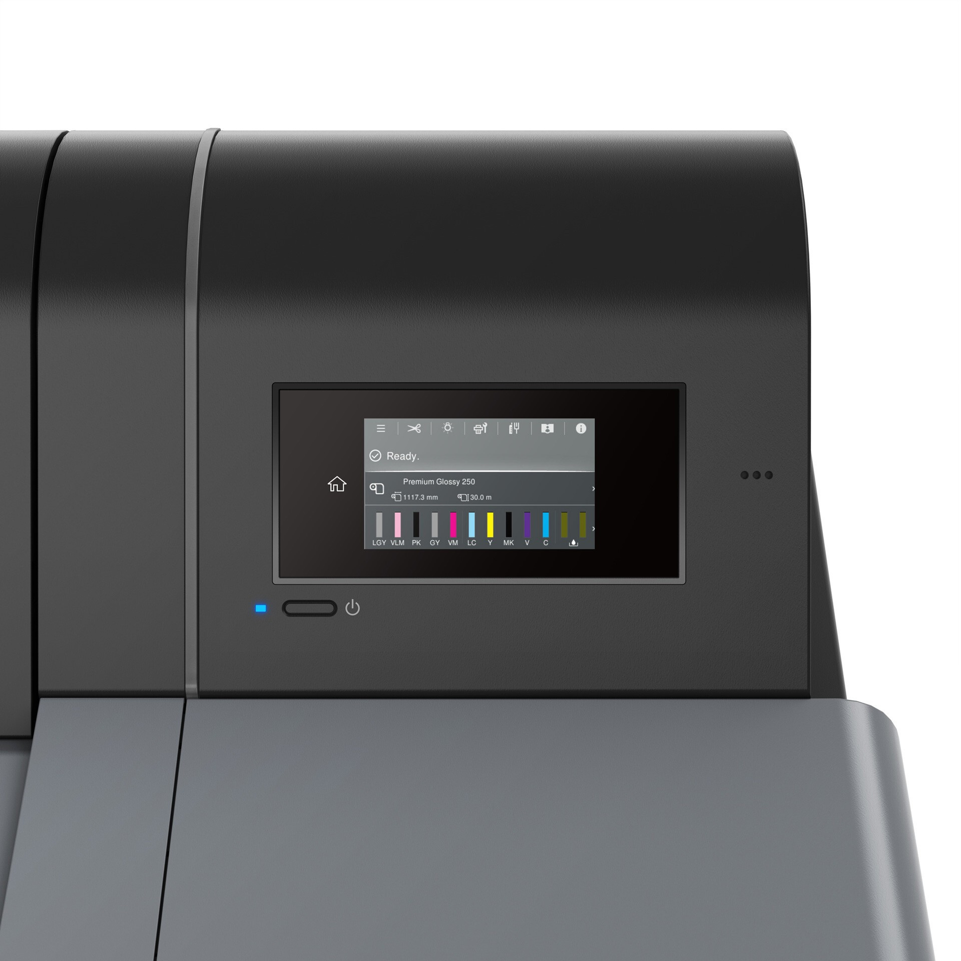 Мастиленоструен принтер Epson SureColor SC-P9300 е висок клас 44-инчов професионален мастиленоструен широкоформатен принтер, проектиран за фотографи, художници и печатници, изискващи най-висока цветова точност и качество на печат. Благодарение на системата UltraChrome PRO10 с десет пигментни мастила, включително виолетово (Violet) се осигурява изключително широк цветови обхват, дълбоки черни тонове и детайлно изобразяване. Печатната глава PrecisionCore MicroTFP с ширина 2,64" позволява висока скорост дори при резолюция до 2400 × 1200 dpi. Мастиленоструен широкоформатен принтер Epson SureColor SC-P9300 се справя с ролки и листове с дебелина до 1,5 мм, оборудван е с 4,3" сензорен дисплей, адаптер за ролки без шпиндел и прахозащитен дизайн. За професионален работен процес предлага допълнително облачен мониторинг и лесно управление на печата. Благодарение на тези характеристики, мастиленоструйният широкоформатен принтер Epson SureColor SC-P9300 е идеалният избор за най-взискателните производствени среди.