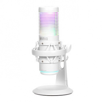 Описание на продукта Marvo, herní/streamovací mikrofon, BLAST 60 White, bílý, RGB podsvícení, vstup pro sluchátka