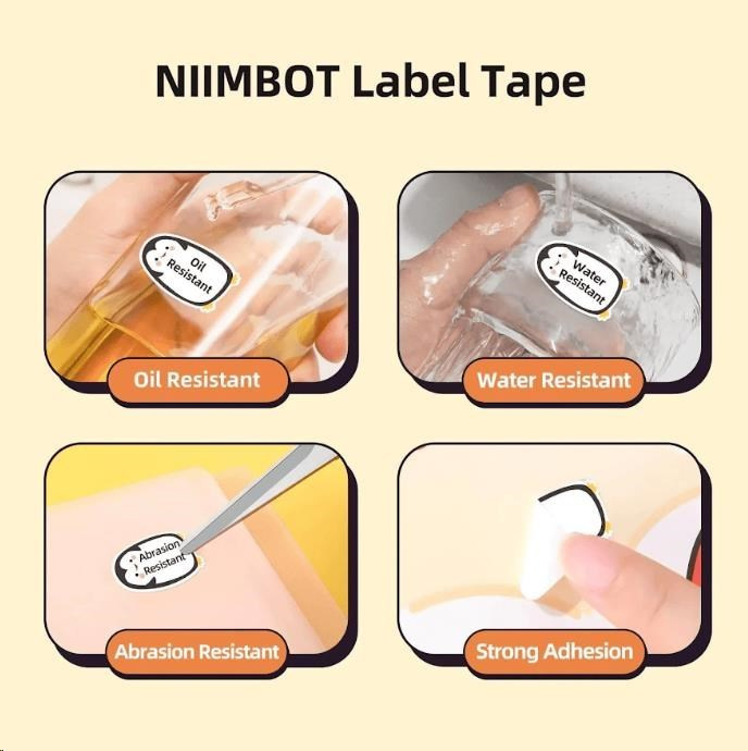 Устойчивост и издръжливост - Повърхността на цветните самозалепващи се етикети Niimbot е устойчива на влага, UV лъчи и износване, което гарантира дълготрайна четливост.