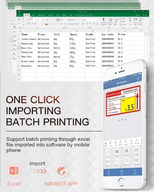 Поддръжка на импортиране на данни от MS Excel – идеално за серийно отпечатване на етикети