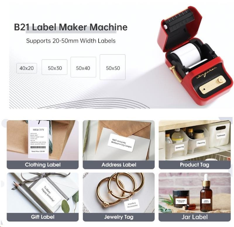 Модел Niimbot Smart B21 1AC13081606 е идеален за офиси, складове, училища и домакинства. Благодарение на автоматичното разпознаване на етикети, лесното управление и прегледното приложение Niimbot App предлага удобство и потребителски комфорт. Висококачествената японска печатаща глава и издръжливите материали гарантират дълъг живот на устройството и самите самозалепващи етикети.
