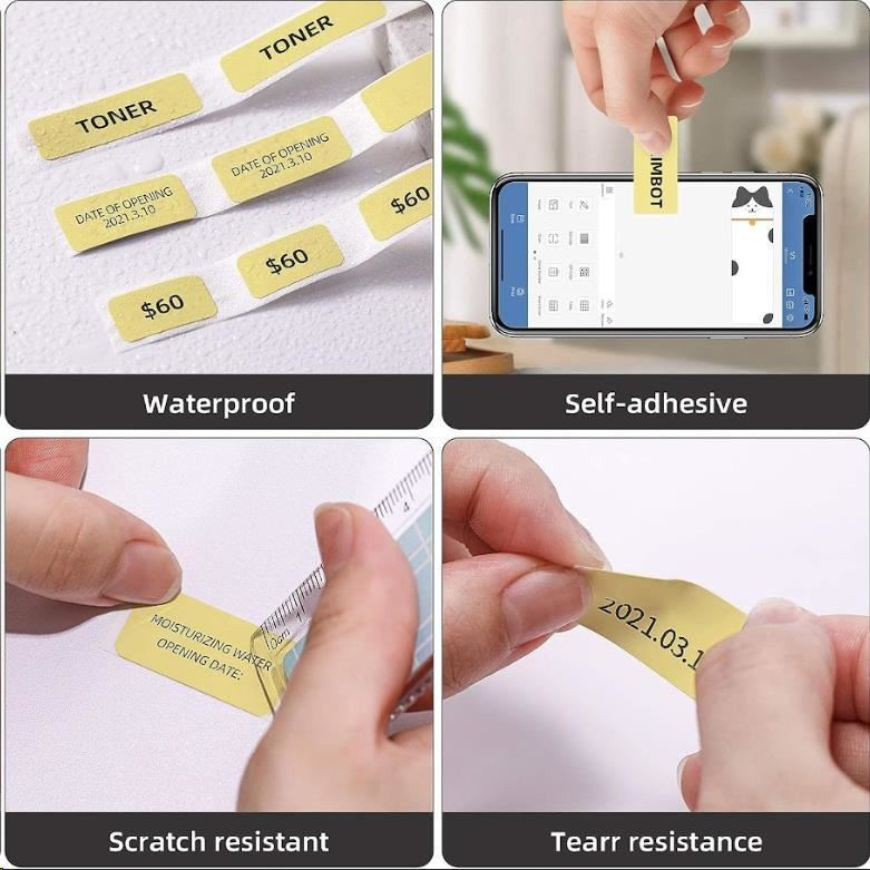 Самозалепващи се етикети за етикетиращи устройства и принтери Niimbot, съвместими с моделите Niimbot D11 и D110. Опаковката съдържа 1 ролка жълти самозалепващи се етикети Niimbot с размери 12x40mm – 155 броя с подобрена технология - хартията е покрита със слой фолио, благодарение на което хартията е по-здрава. Ролката е предназначена за директен термален печат с помощта на съвместим принтер Niimbot. Етикетите имат лепкав слой, който ефективно прилепва към различни материали. Перфорацията между отделните етикети улеснява тяхното разделяне след печат. Етикетите на марката NIIMBOT са изработени от високоустойчиви материали и след печат са ламинирани, което осигурява тяхната дълготрайност. Те са устойчиви на замръзване, масло, вода и имат повишена устойчивост на слънчева светлина. Благодарение на това можете да бъдете сигурни, че вашите етикети ще останат четливи и здраво прикрепени за дълго време..