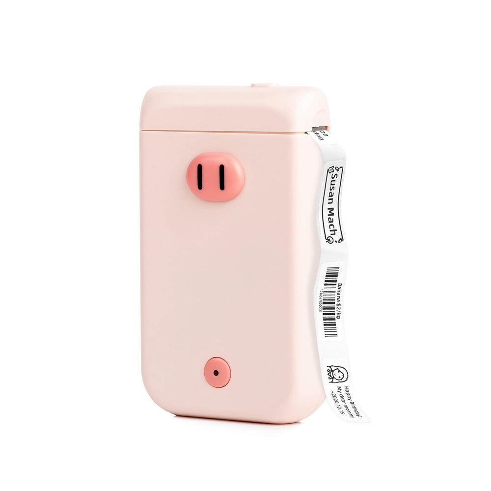 Етикетираща машина PONY D30S Mini Pink Pig е джобен термопринтер. Печатайте лесно и бързо от своя мобилен телефон или таблет чрез безжична връзка BlueTooth, или с приложението Print Master за Android или iOS. Етикетиращото устройство PONY D30S може да печата върху самозалепващи етикети от екологични материали баркодове, текст, изображения и икони. С този сладък и цветен етикетировач с мотив на прасенце, който ще бъде полезен помощник във вашето домакинство, можете да маркирате бурканчета с подправки в кухнята, органайзери за козметика или бижута, училищни тетрадки, кабели и др. Подходящи са и за създаване на ценови етикети за вашите занаятчийски изделия или за декоративни етикети за подаръци. При нас ще намерите също самозалепващи се етикети в различни цветове с красиви и декоративни мотиви.