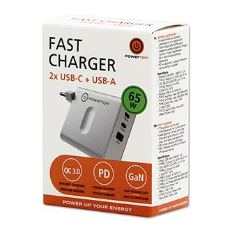Powerton ENERGY VOLTIX адаптер 65W, 3 порта, GaN, 2x USB-C, 1x USB-A, QC 3.0, PD
