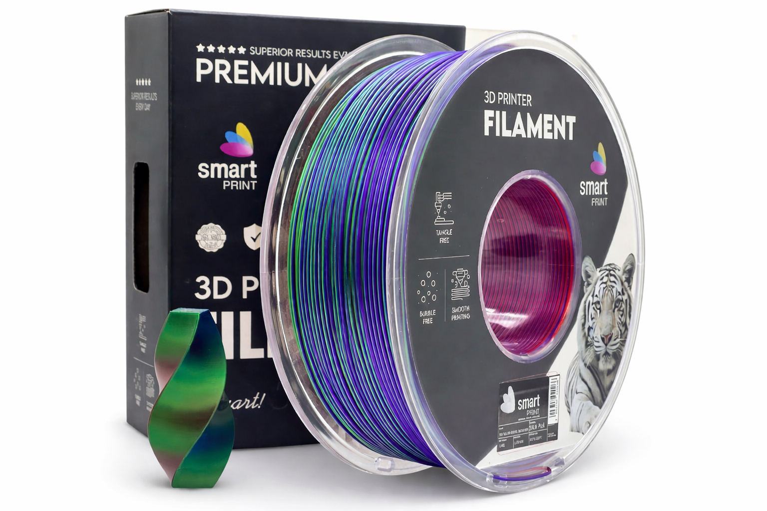 Благодарение на подобрен състав и специални добавки, Smart Print Silk PLA предлага по-добра дълбочина на цветовете и по-висока устойчивост на отпечатъците, без да се ограничава лесната печатаемост, типична за PLA.
