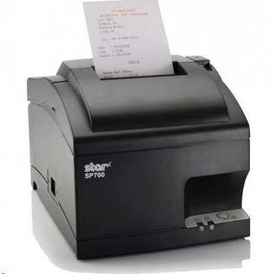 Матричен принтер STAR Micronics с обозначение SP712 в черен цвят с връзка към компютър чрез сериен порт и с вградена отрязваща лента. Отличава се с висока скорост и надеждност. Тези характеристики, заедно с ниската цена, правят този принтер идеално устройство за използване в търговията на дребно и хотелиерството.