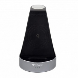 Verbatim 49555 Стойка за зареждане 2 v 1, 1x iPhone + 1x Apple Watch, 9V, 20W, Сертифициране MFi и Qi, черно