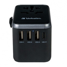 Verbatim World-to-World UTA-04 49546 Универсален адаптер за пътуване, USB-A, USB-C, 61 W, черно