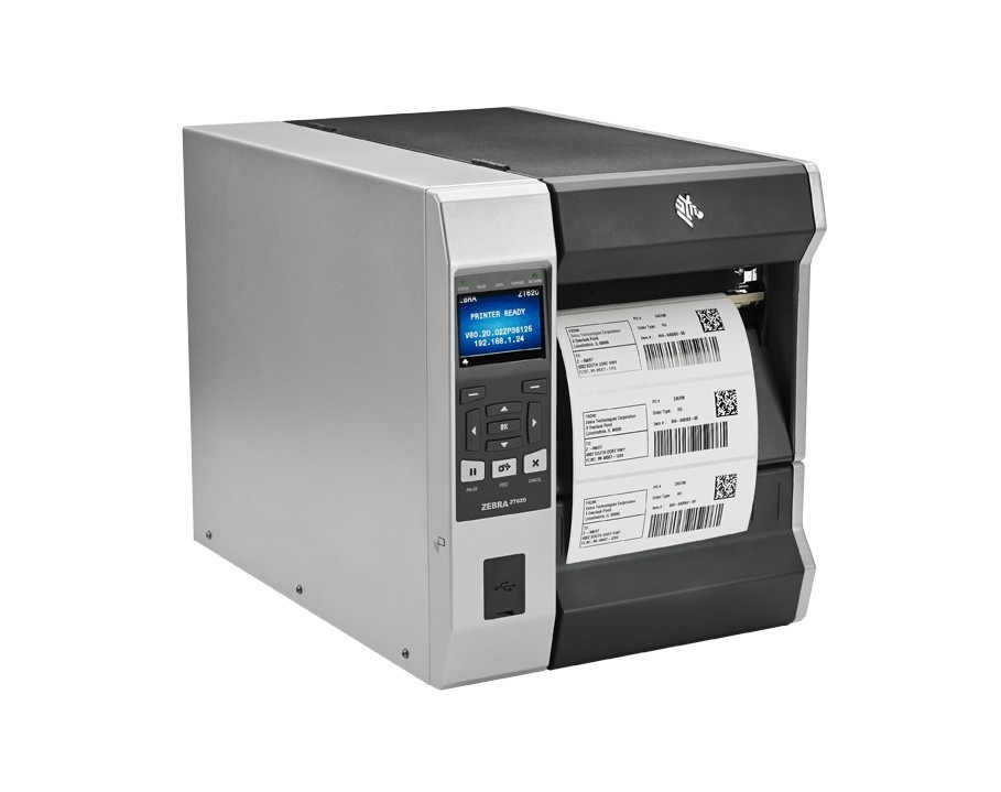 етикетен принтер, индустриален принтер, термотрансферен, 12 точки/мм (300 dpi), максимална ширина на медията.): 178 мм, ширина на печат (макс.): 168 мм, диаметър на ролката (макс.): 203 мм, скорост (макс.): 203 мм/с, USB, RS-232, Bluetooth, Ethernet (10/100/1000 Mbit), емулация: ZPL, ZPLII, XML, RAM: 1 GB, Flash: 2GB, пренавивач, дисплей (сензорен екран, цветен), реален часовник, вкл.: захранващ кабел (ЕС, Великобритания), поръчайте отделно: интерфейсен кабел.